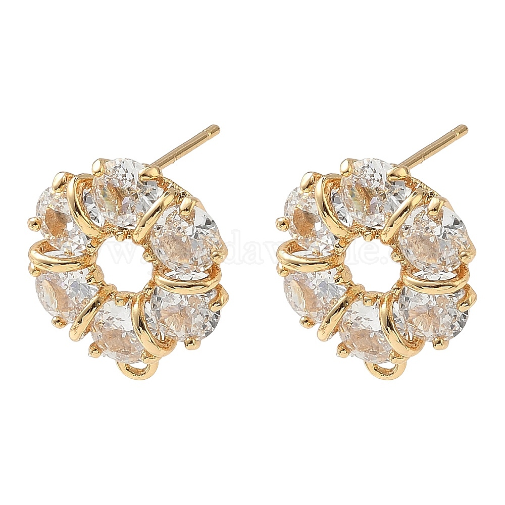 Плоские круглые латунные серьги-гвоздики с микропаве из прозрачных кубических цирконий, без никеля , с петлей