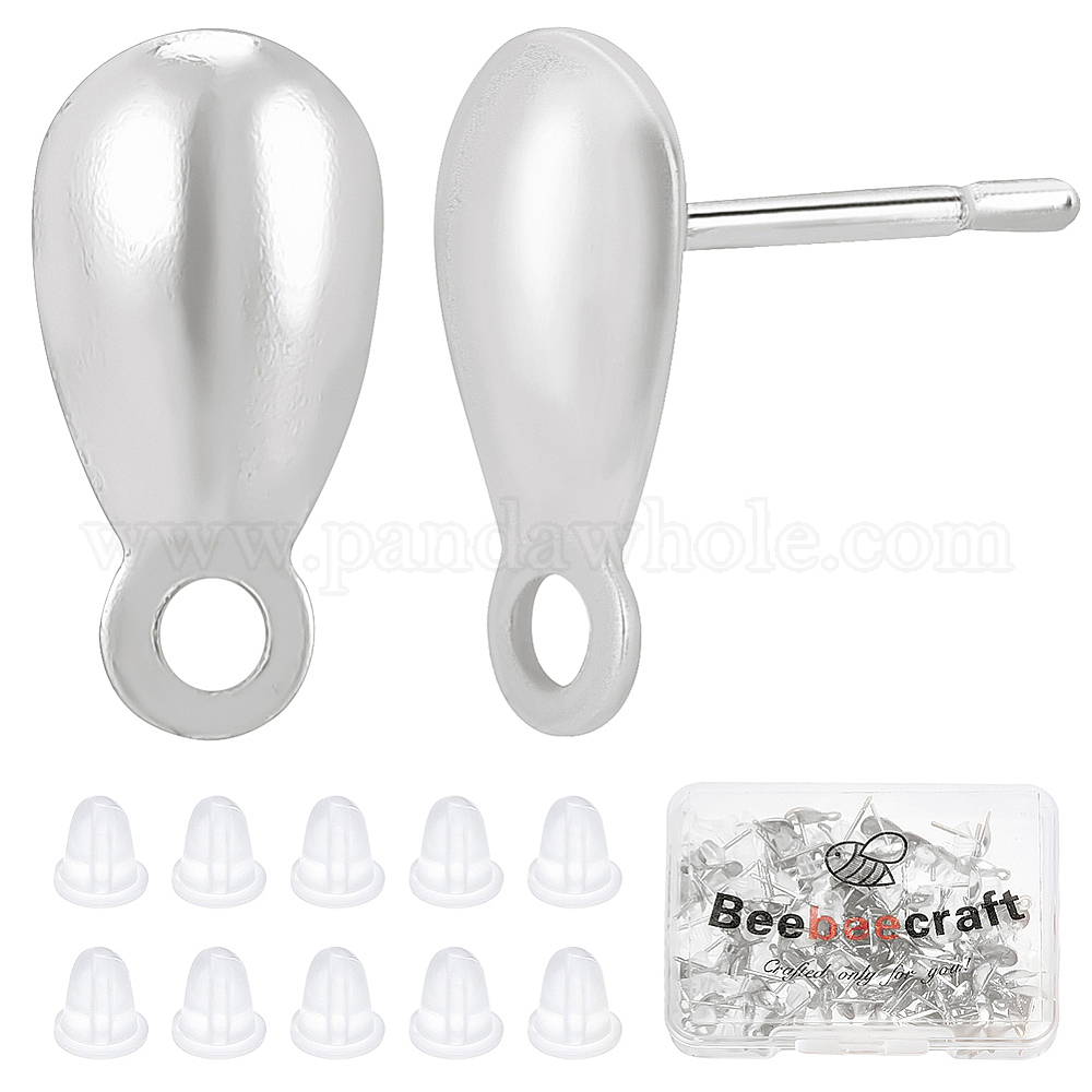 100 шт 304 детали серьги-гвоздики из нержавеющей стали, с горизонтальной петлей, слеза, с гайкой 100шт.