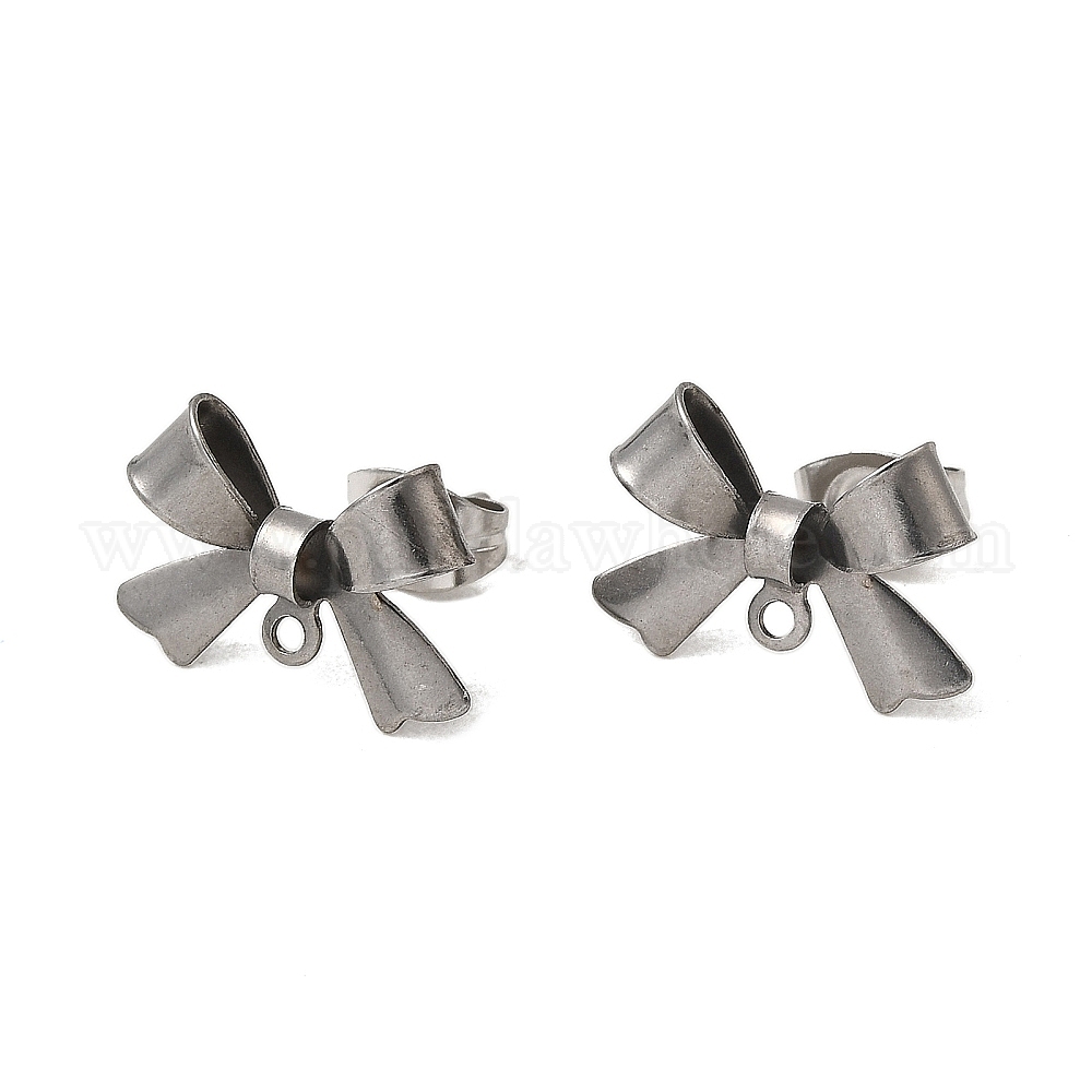 304 фурнитура для сережек-гвоздиков в виде банта из нержавеющей стали, с петлей