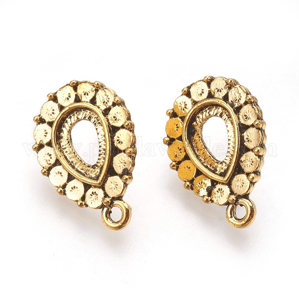 Настройки серьги-гвоздики в тибетском стиле, с петлей, овальные, 21x14 мм, отверстие : 2.5 мм, контактный: 1 mm, лоток: 10x7 mm