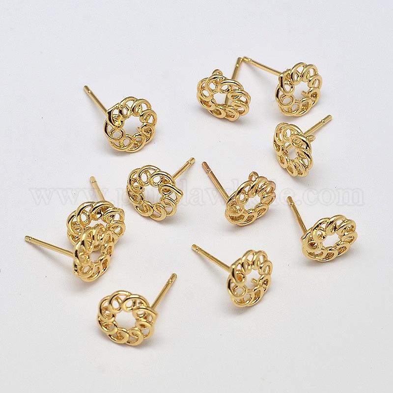 • Настоящее золото 18K Изделия из латуни, с вертикальными петлями, без свинца, без никеля и без кадмия, цветок, реальный 18 k позолоченный, 9 мм, штифты : 0.8 мм