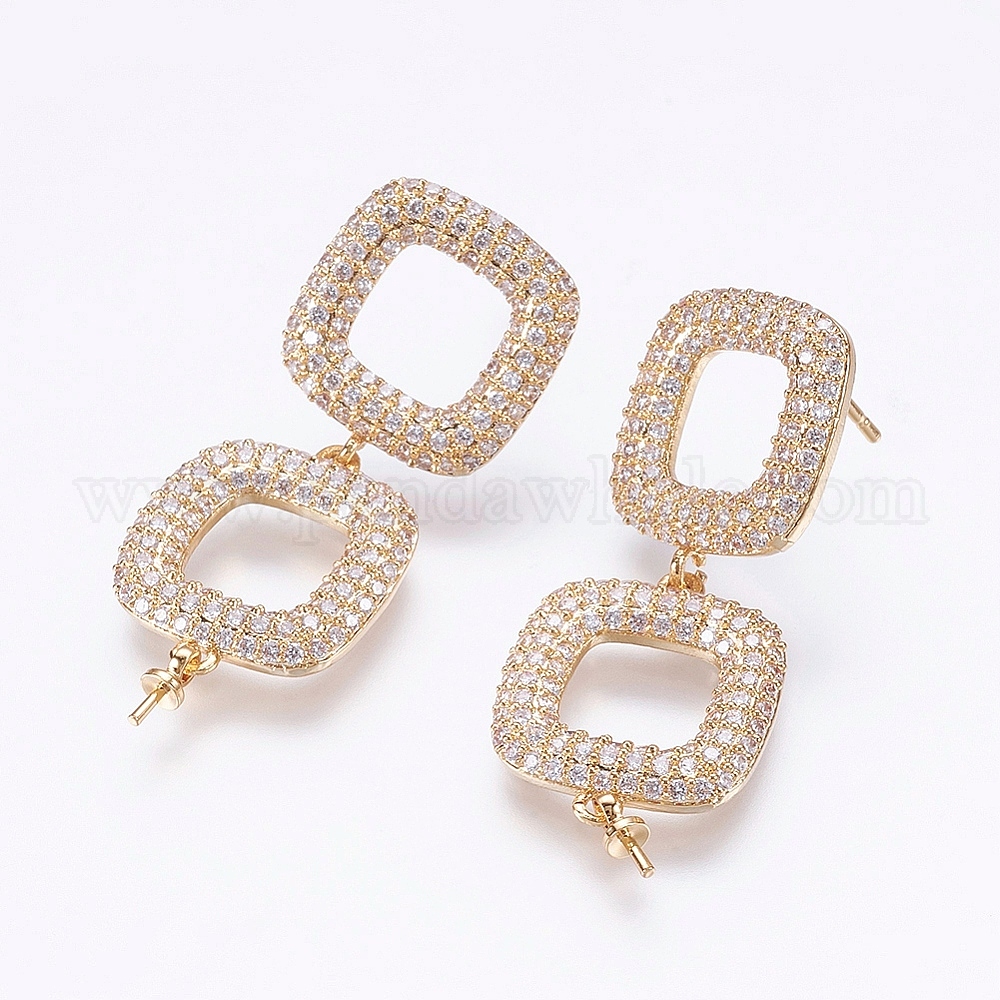 Латунные серьги-гвоздики из циркония, за половину пробурено бисера, квадратный