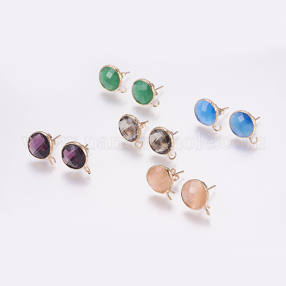 Серьги из граненого стекла, с петлей, золотые тона латунные находки, плоско-круглые