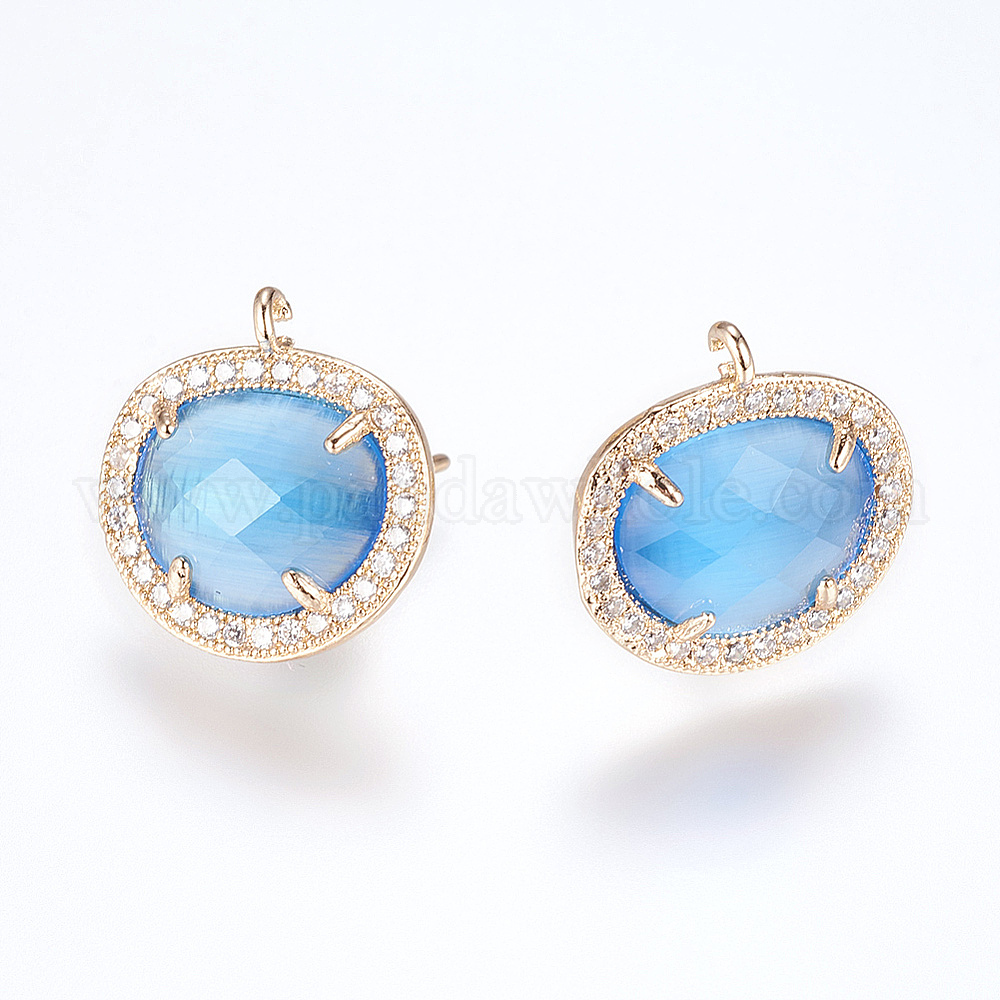 Латунные серьги-гвоздики из циркония, с петлей, кошачий глаз, овальные, золотые