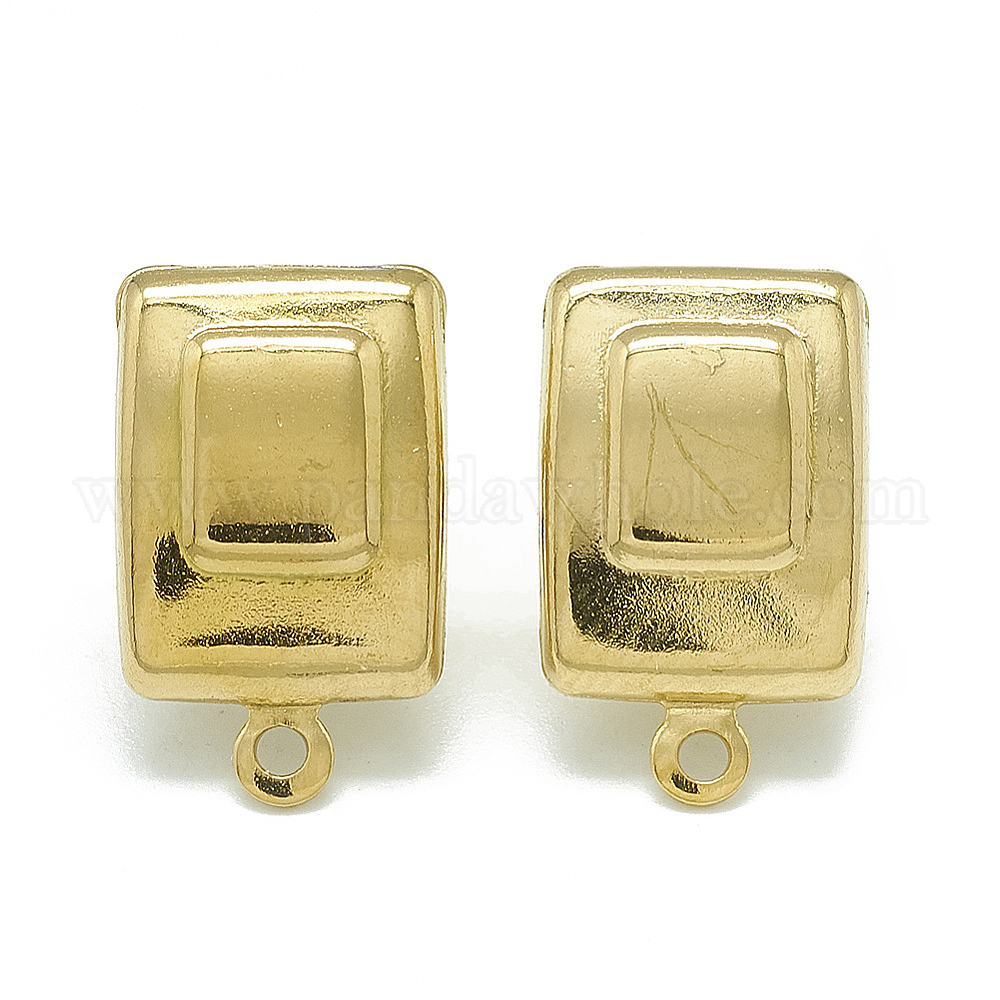 • Золотой 304 Выводы серьги из нержавеющей стали шпилька, с петлей, прямоугольные, золотые, 16.5x10 мм, отверстия: 1.4 мм, штифты: 0.8 мм
