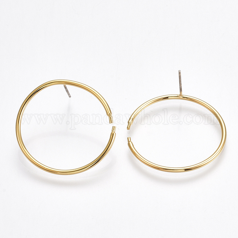 Изделия из латуни, серьги-кольца, без никеля , реальный 18 k позолоченный