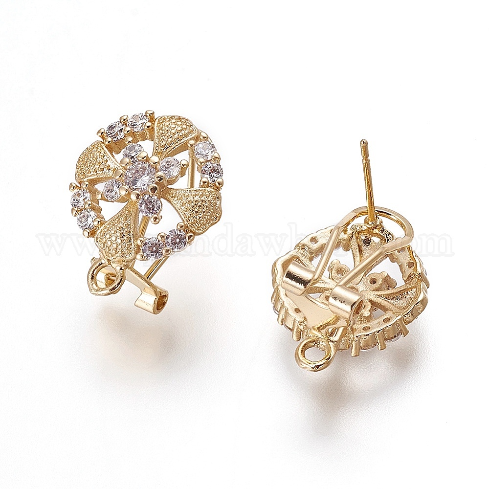 Латунные серьги-гвоздики из циркония, с петлей, плоские круглые с цветком