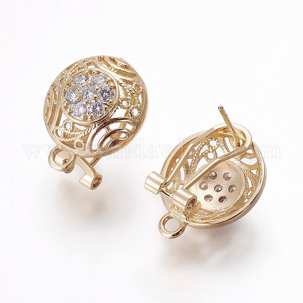 Латунные серьги-гвоздики из циркония, с петлей, полукруглый
