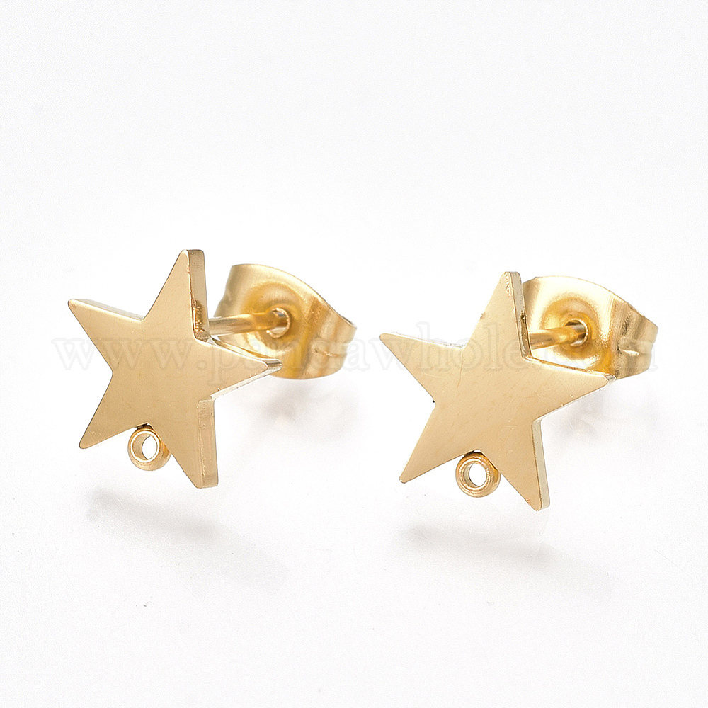 • Золотой Ионное покрытие (ip) 304 детали серьги-гвоздики из нержавеющей стали, с петлей и плоской пластиной, ушные орехи / серьги спины, звезда, реальный 18 k позолоченный, 9.5x10 мм, отверстие : 1 мм, штифты : 0.8 мм