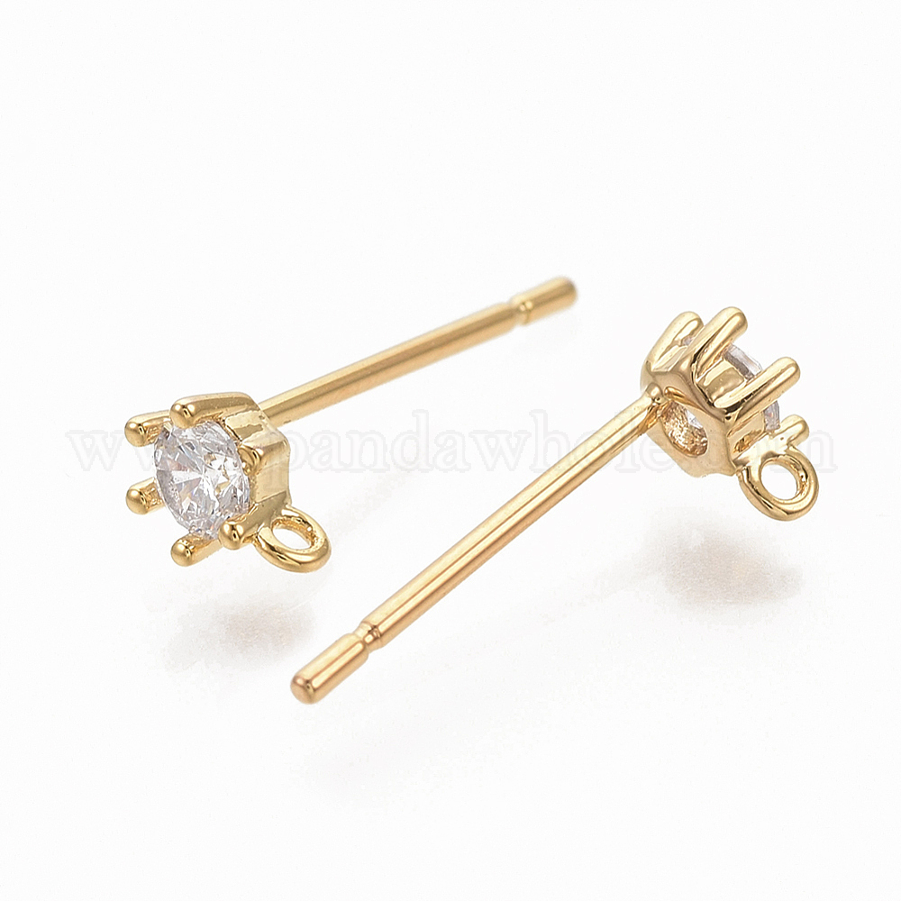 Латунные серьги-гвоздики с фианитами, с петлей, без никеля , реальный 18 k позолоченный