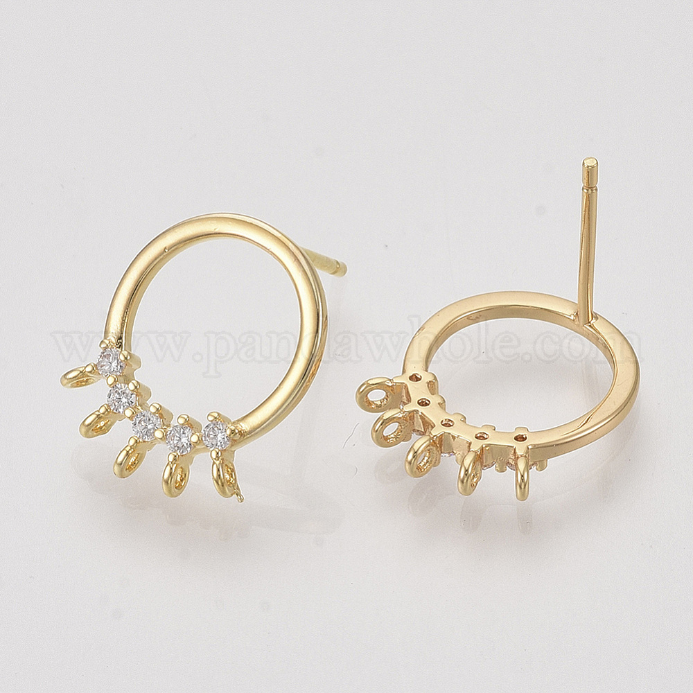 • Настоящее золото 18K Латунные серьги с цирконом, с петлей, кольцо, прозрачные, без никеля , реальный 18 k позолоченный, 12x15 мм, отверстие : 1 мм, штифты : 1 мм