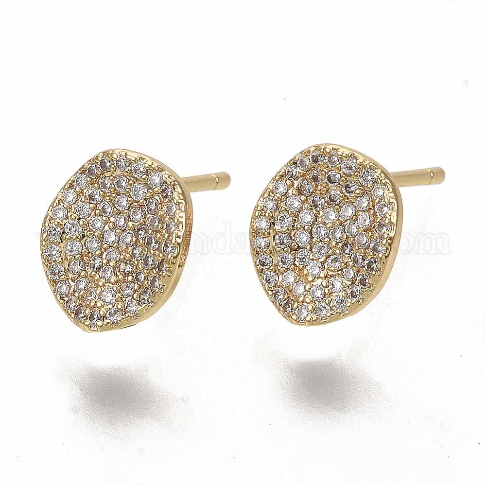 Латунные микро-паве прозрачные серьги-гвоздики из циркония, с петлей, без никеля , реальный 18 k позолоченный
