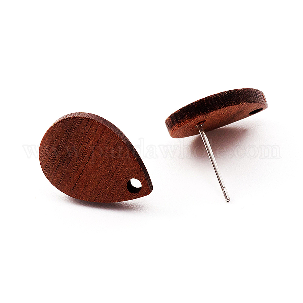 Серьги-гвоздики из коричневого дерева с кокосом, с серьгой из сплава, слеза