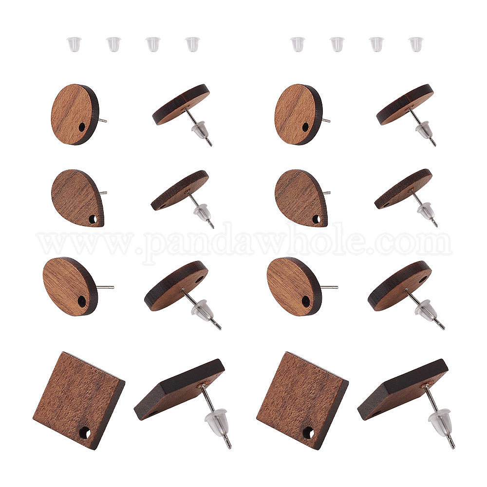 Серьги-гвоздики из коричневого дерева с кокосом, с петлей, серьги из сплава и пластиковые гайки для ушей, разнообразные