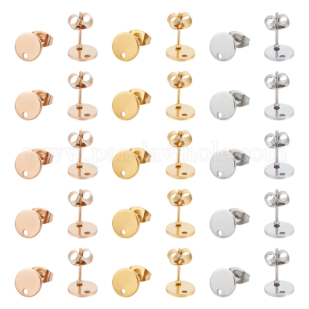 Вакуумное покрытие pvd 304 фурнитура для сережек-гвоздиков из нержавеющей стали, с петлей и плоской пластиной, плоско-круглые