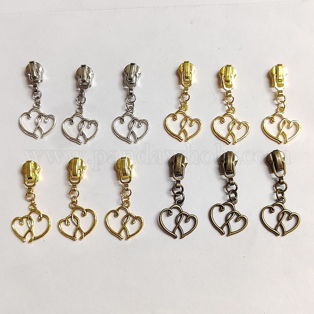 Бегунок на молнии из цинкового сплава, с подвеской в виде двойного сердца