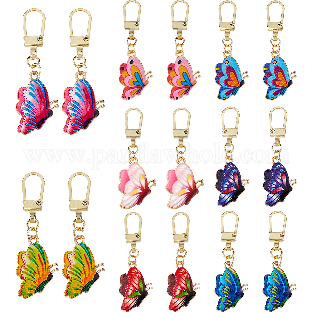16 шт. 8 цвета сплава застежки-молнии язычки, подвески из эмали из белого сплава, бабочка