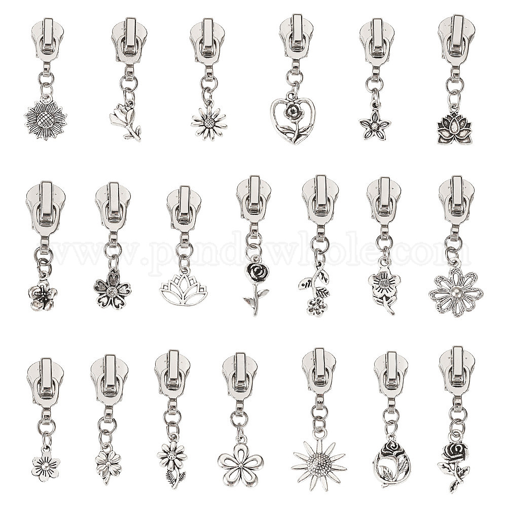20 ползунки на молнии из легкого сплава, цветок, Сплав с подвесками