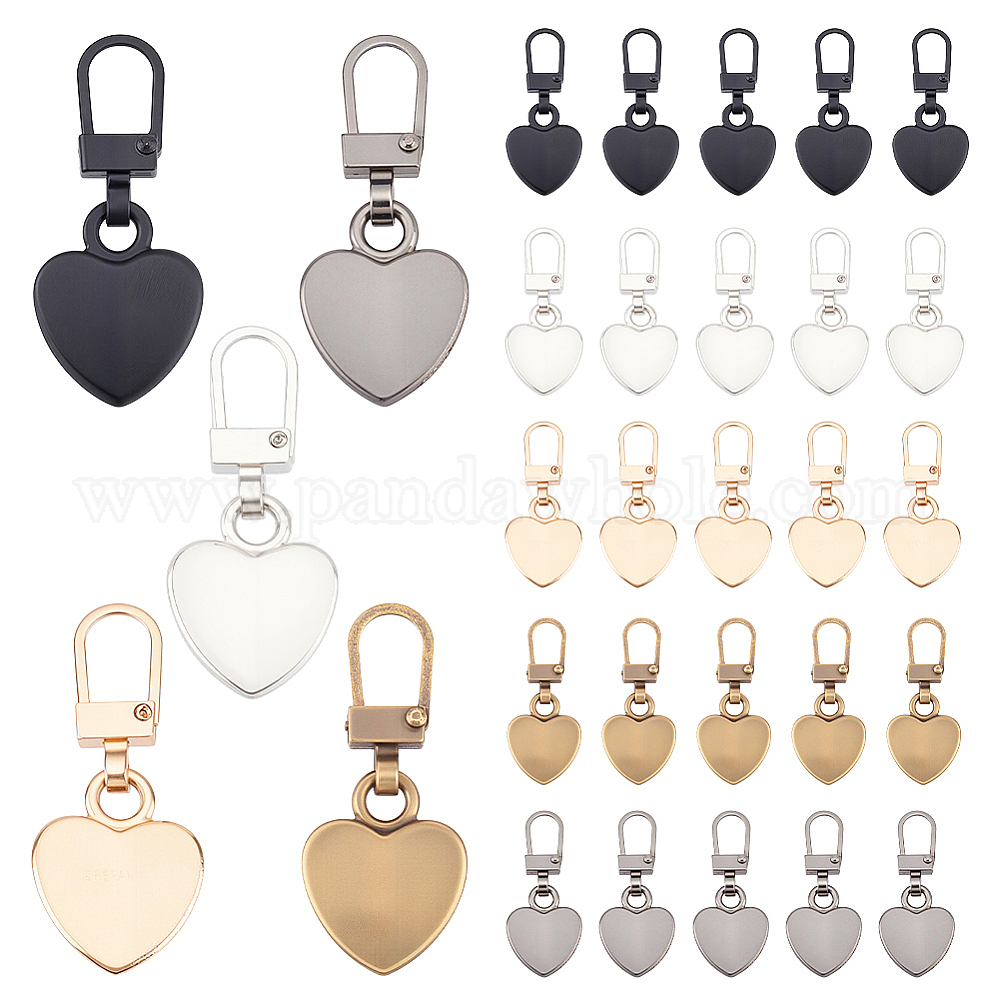 30шт. 5 цвета, бегунки молнии из сплава, сердце