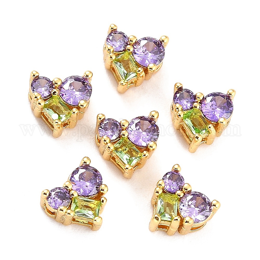 • Настоящее золото 18K Латунь кубического циркония многожильных ссылки, долговечный, сердце, реальный 18 k позолоченный, 8x8x5 мм, отверстие : 1 мм