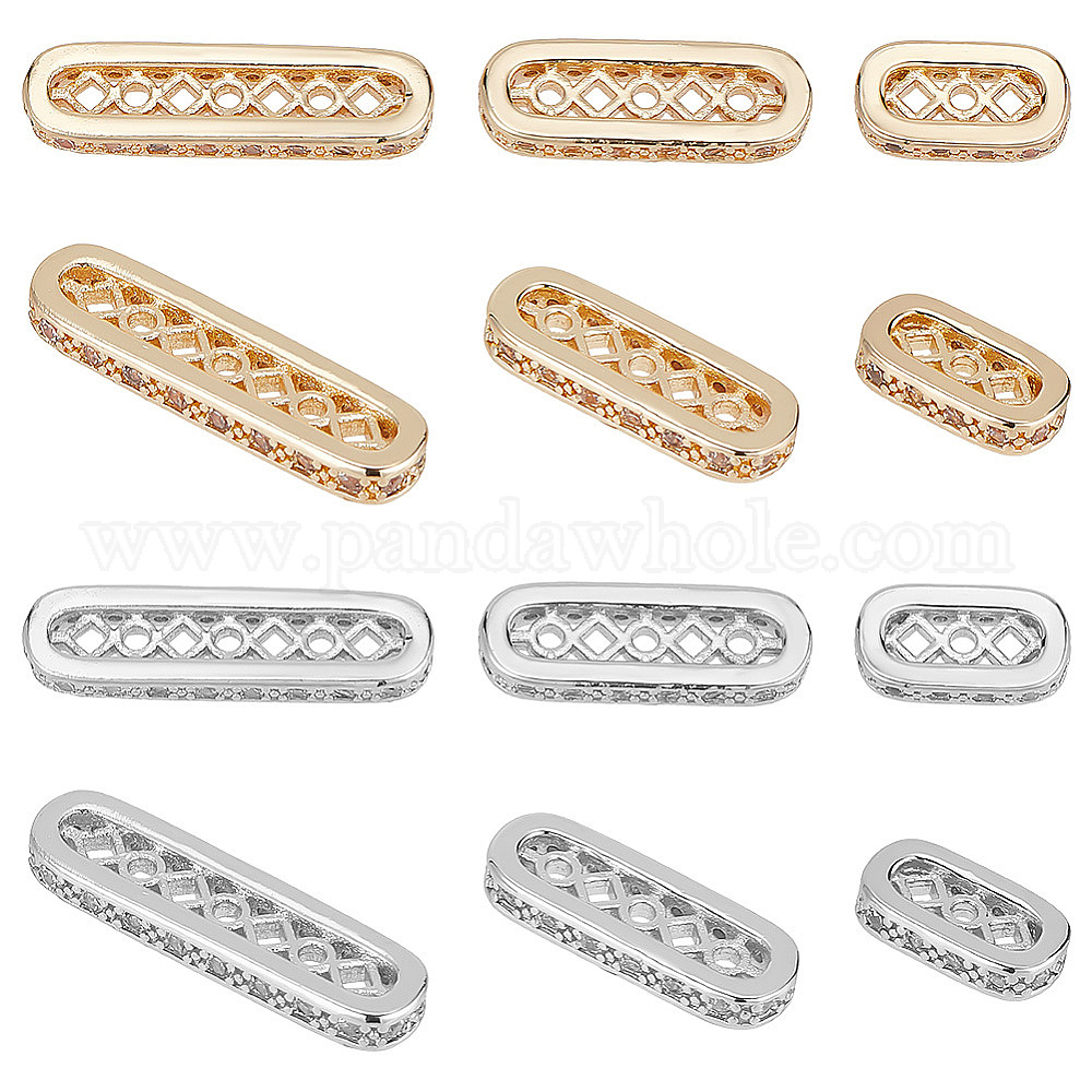12шт. 6 стили латунь паве кубический цирконий многопозиционные звенья, овальные связи