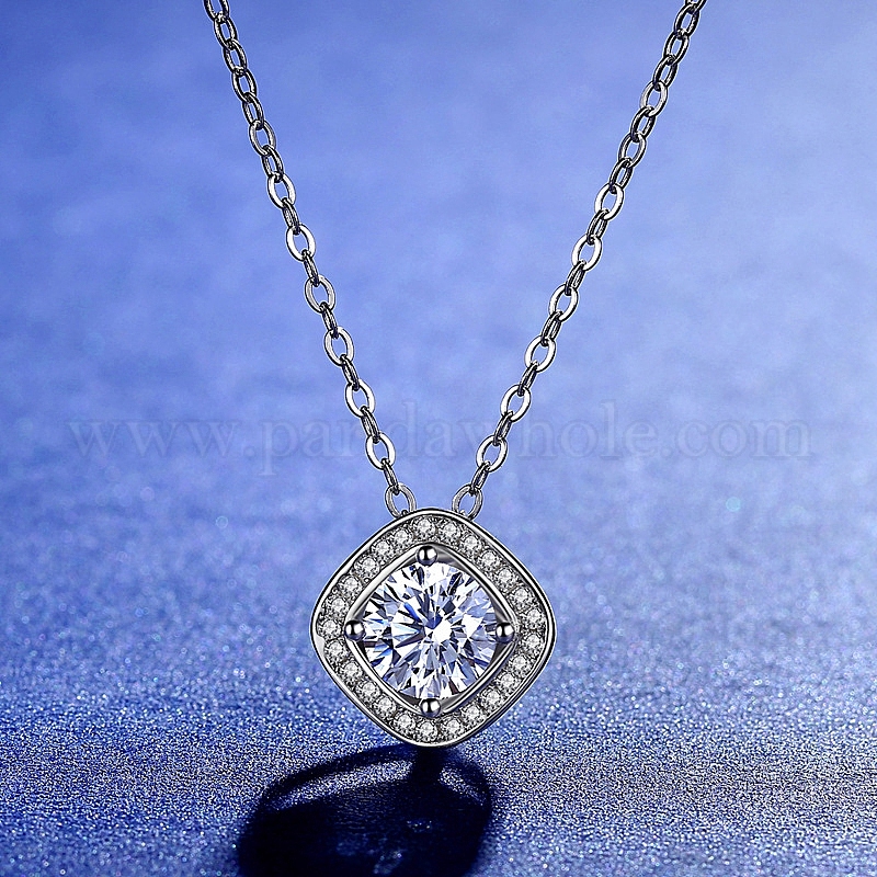Родиевое покрытие 925 серебро 925 пробы с микропаве, прозрачный кубический цирконий, квадратные многожильные звенья, с кристаллами муассанита и стразами