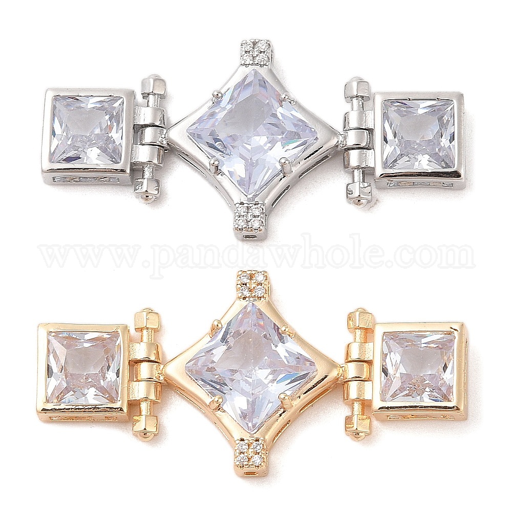 • Платинированный Латунные микропаве прозрачные многонитевые звенья из циркония, ромбовидные квадратные стеклянные звенья, без кадмия, без никеля и без свинца, Реальная платина, 21.5x44x6.5 мм, отверстие : 1.1~1.2x1.6~2.6 мм
