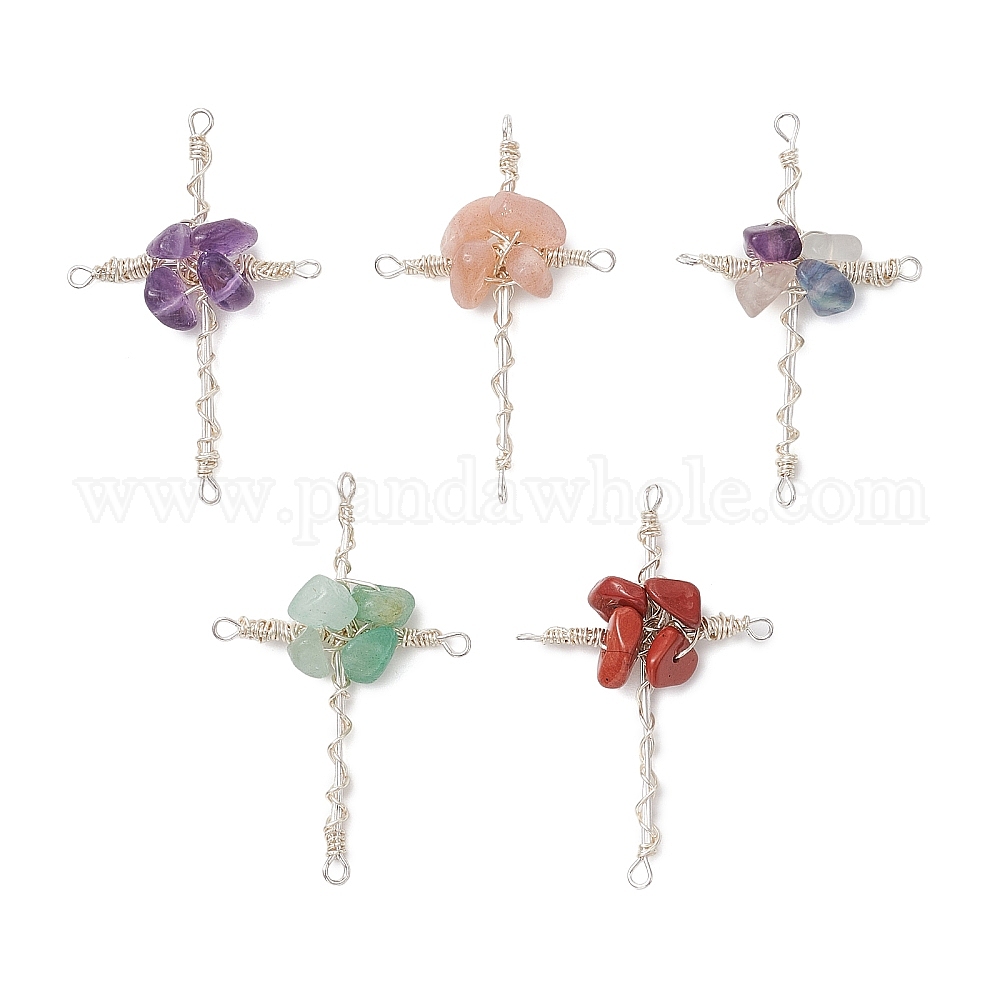 Натуральный флюорит/зеленый авантюрин/солнечный камень/красная яшма/аметистовая крошка медной проволоки, обернутая крестообразной многожильной цепочкой, серебряный цвет гальваническим