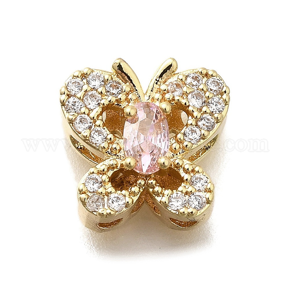 Латунные многорядные звенья в форме бабочки из прозрачного и розового кубического циркония, долговечный, стойки покрытие