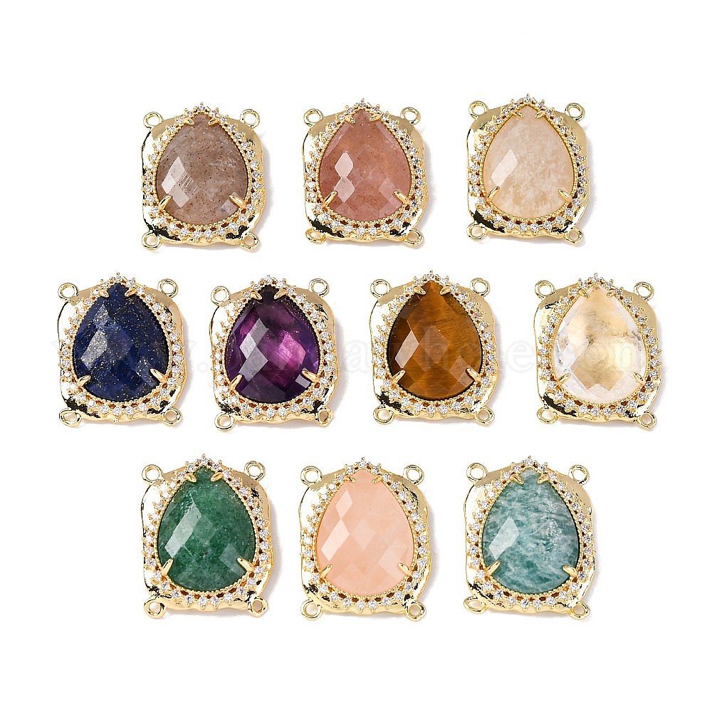 Латунные многорядные звенья с микропаве из кубического циркония и натуральным драгоценным камнем, слеза, граненые, стойки покрытие