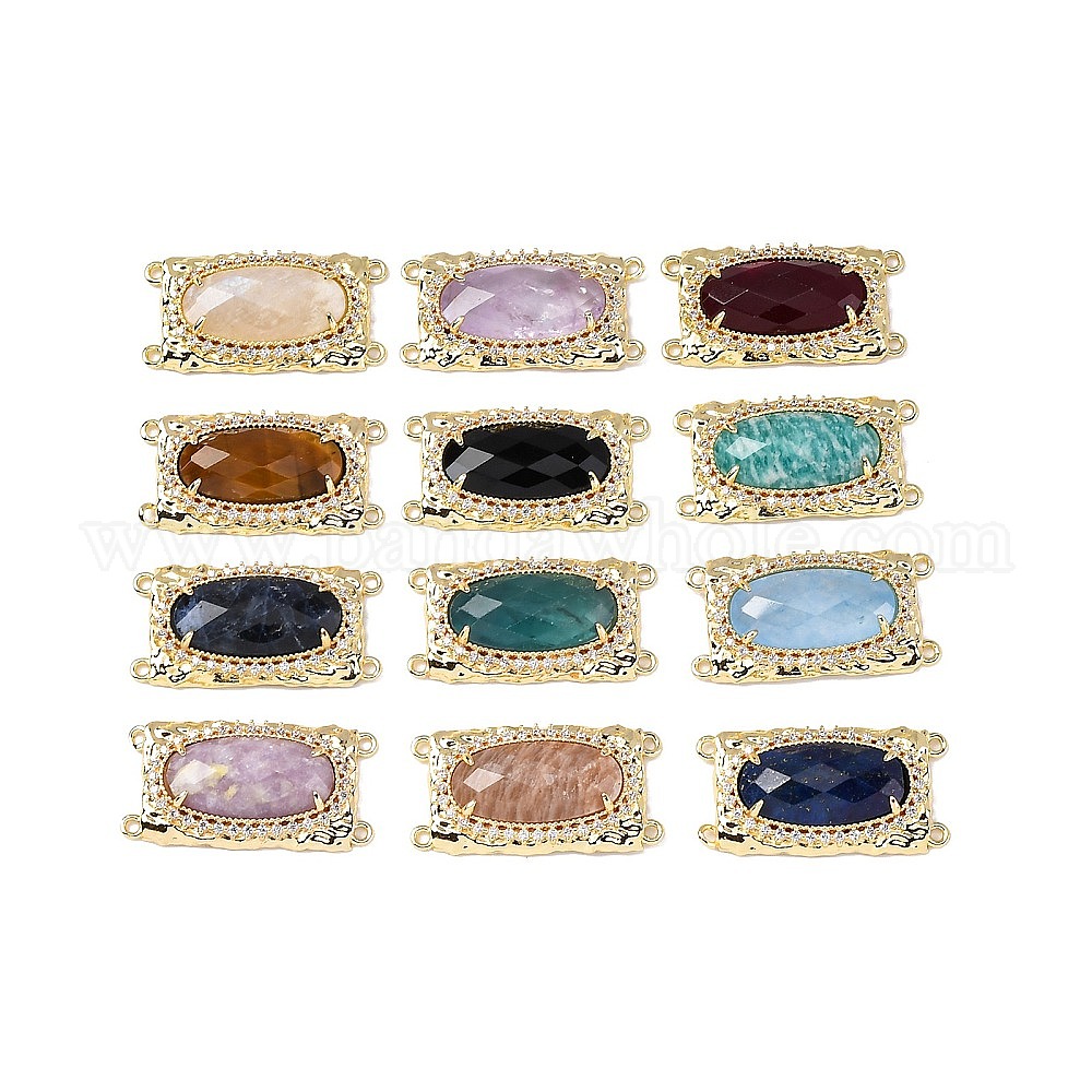 Латунные многорядные звенья с микропаве из кубического циркония и натуральным драгоценным камнем, овальные, граненые, стойки покрытие