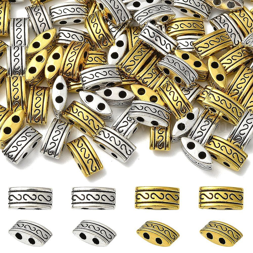 • Античный Серебрянный & Античный Золотой 100 шт. 2 цвета многожильных звеньев в тибетском стиле, несущие бусины с двумя отверстиями, без кадмия, без никеля и без свинца, прямоугольные, старинное серебро и античный золотой, 5x10x4 мм, отверстие : 1.5 мм, 50 шт / цвет