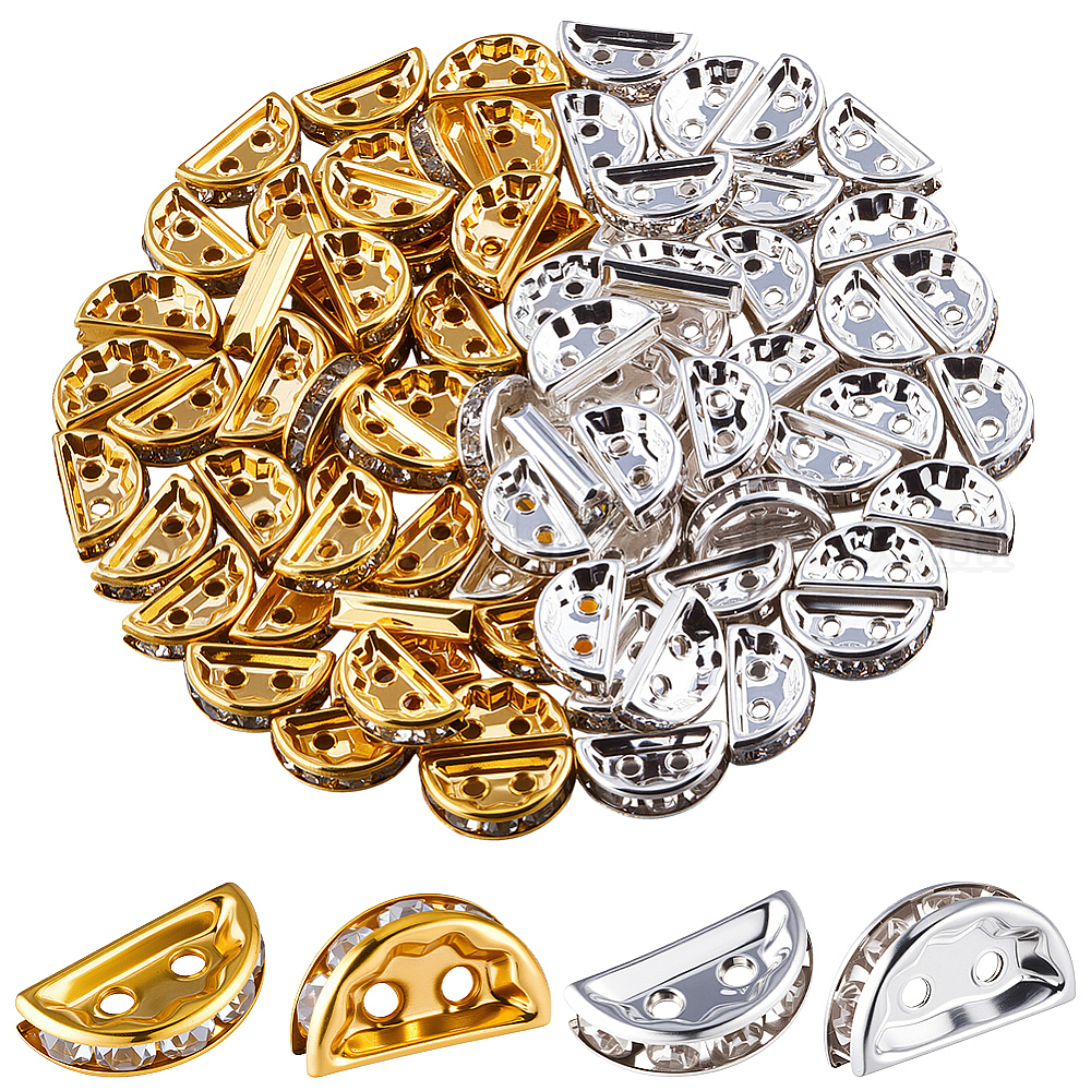 100шт. 2 цвета сплав кристалл стразы распорки, полукруглый