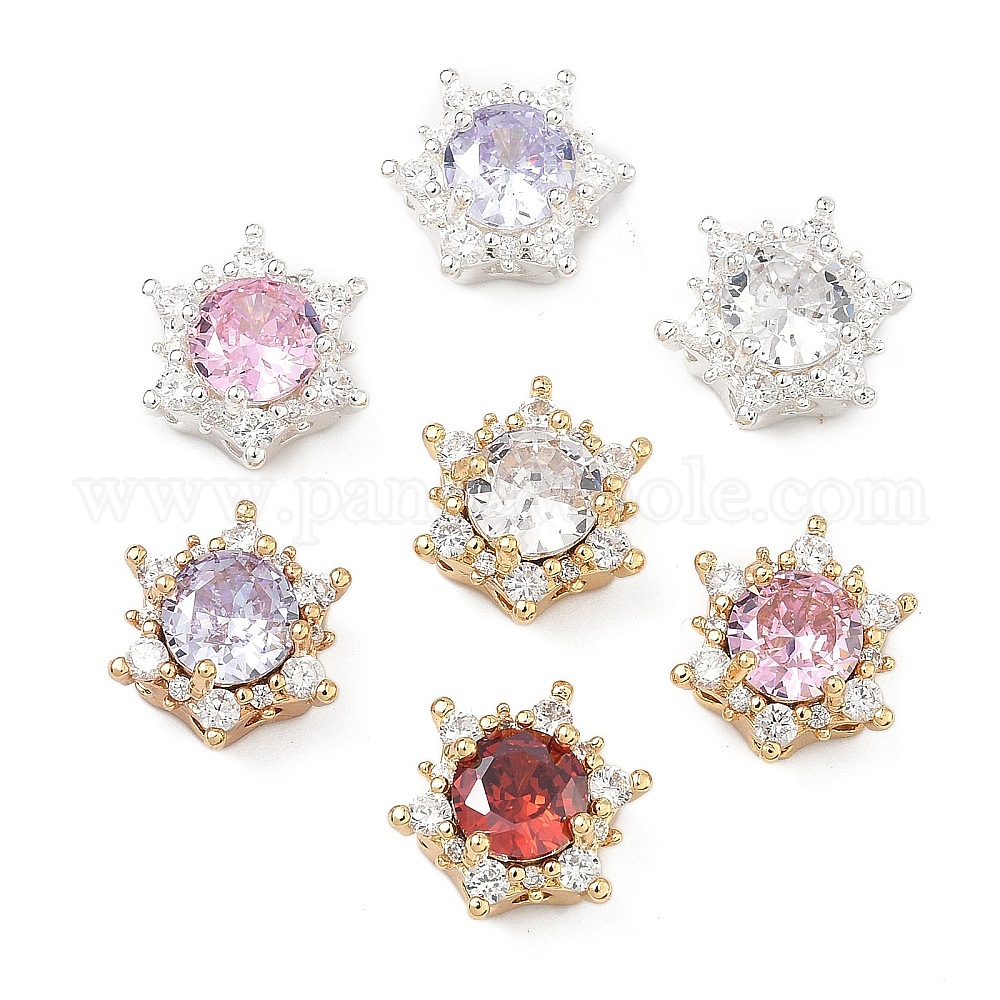 Латунные звенья с инкрустацией кубическим цирконием, шестиугольный цветок