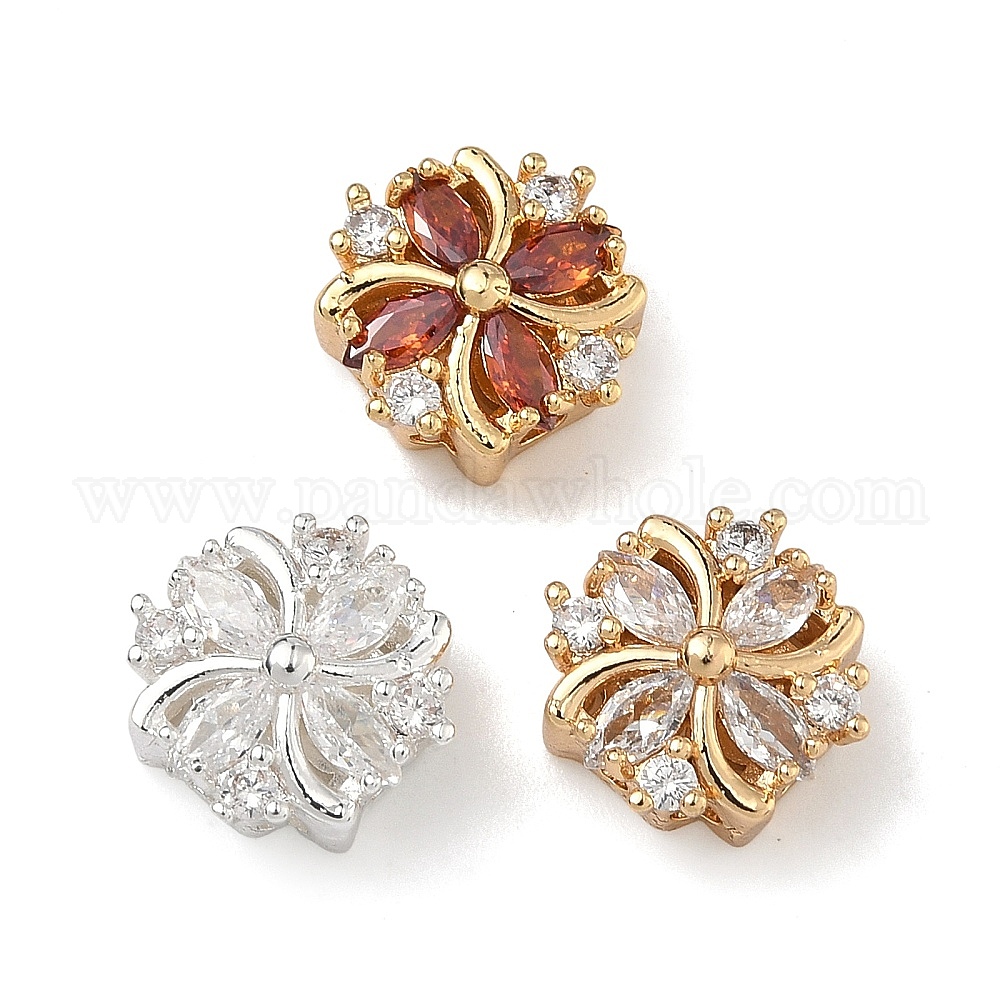 Латунные звенья с инкрустацией кубическим цирконием, цветок