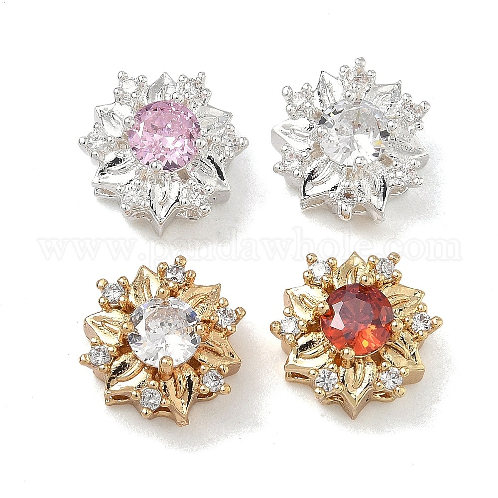 Латунные звенья с инкрустацией кубическим цирконием, цветок