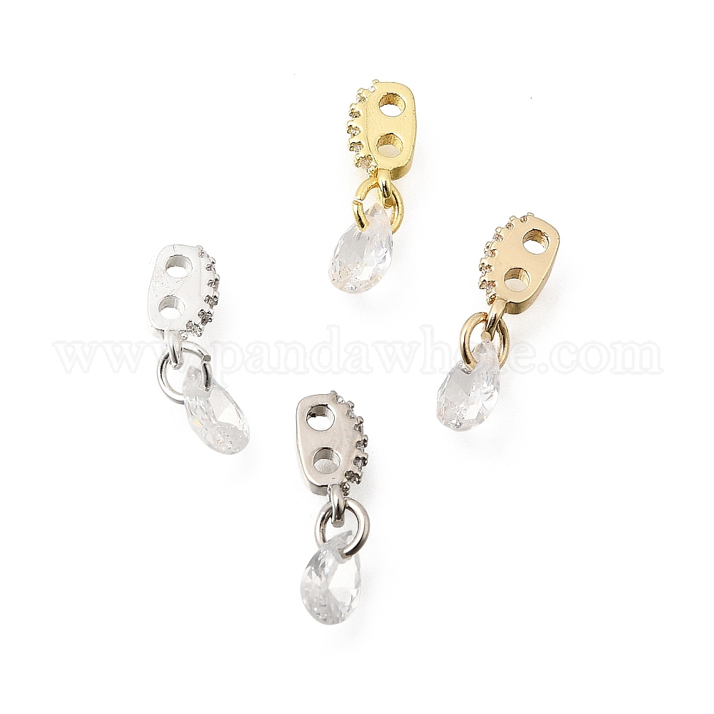 Латунные овальные разделительные планки с петлями и прозрачной кисточкой из кубического циркония в форме капли., стойки покрытие, долговечный, без свинца и без кадмия