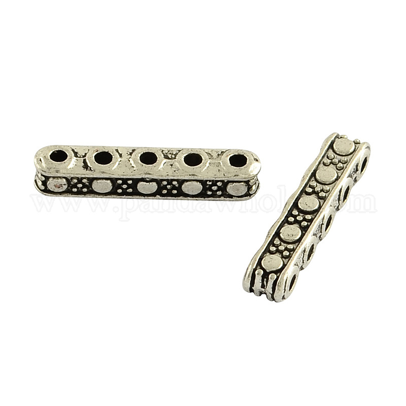 Тибетский стиль сплава прямоугольного параллелепипеда разделительные полосы, 5-луночное, без свинца и без кадмия, 3.5x17x3 мм, Отверстие : 1.5 мм , около 1538 шт / 1000 г