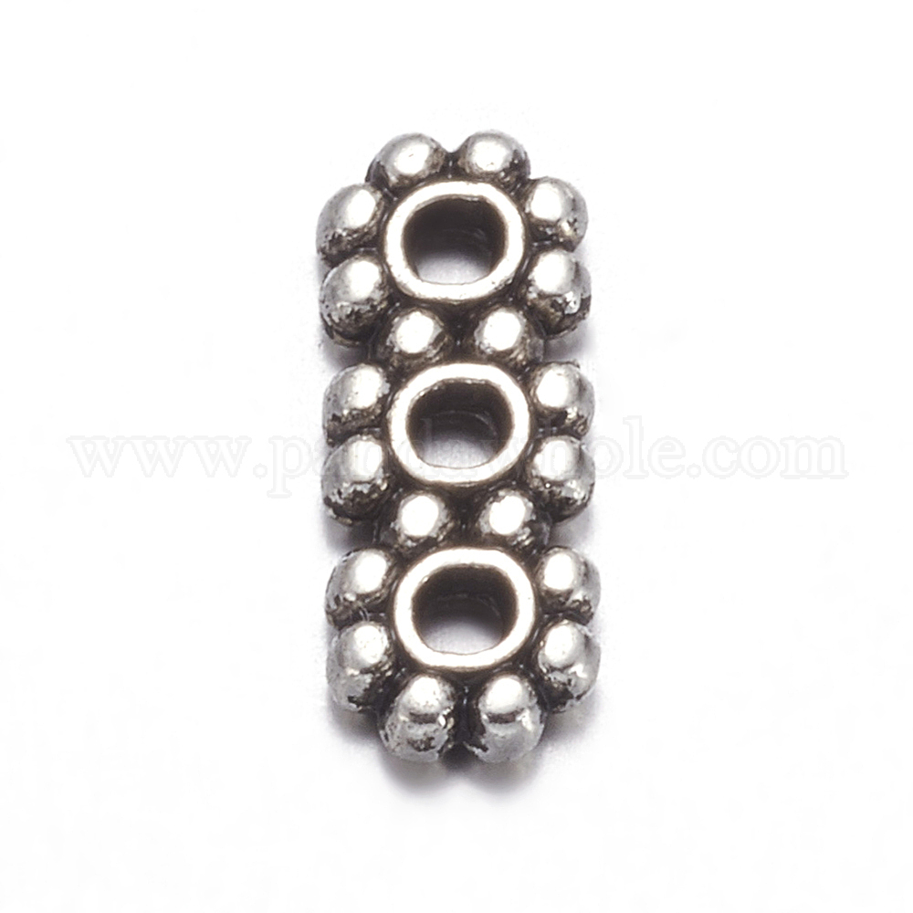 Тибетский стиль сплава распорные бруски, 3-луночное, прямоугольные, без кадмия и без свинца