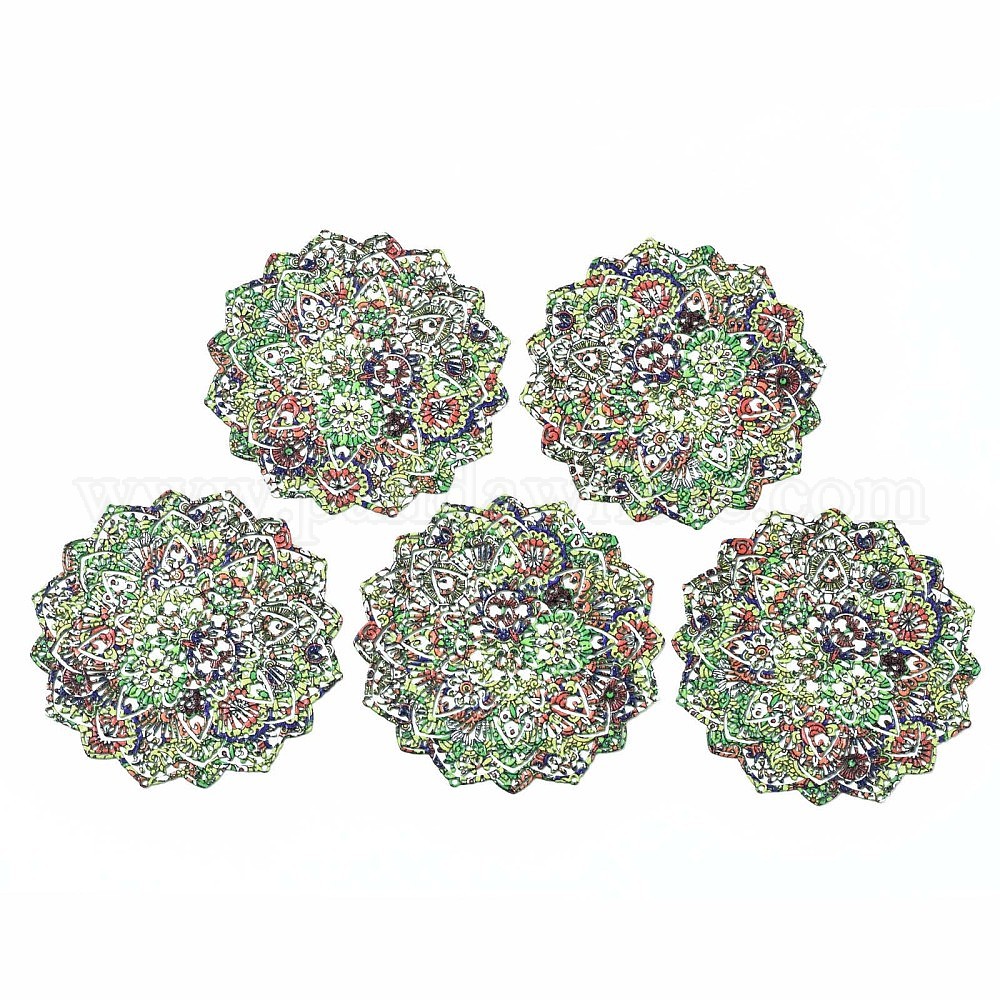 430 из нержавеющей стали Компоненты для люстр ссылки, окрашеные, гравированные металлические украшения, цветок с цветочным узором