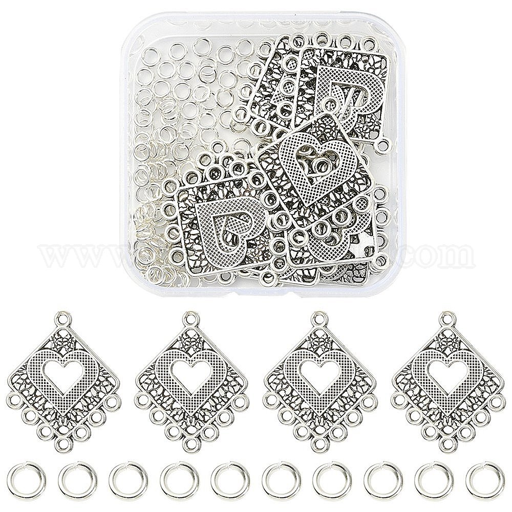 20 Соединения компонентов люстры из сплава в тибетском стиле, ромб и сердце, с 100 соединительными кольцами