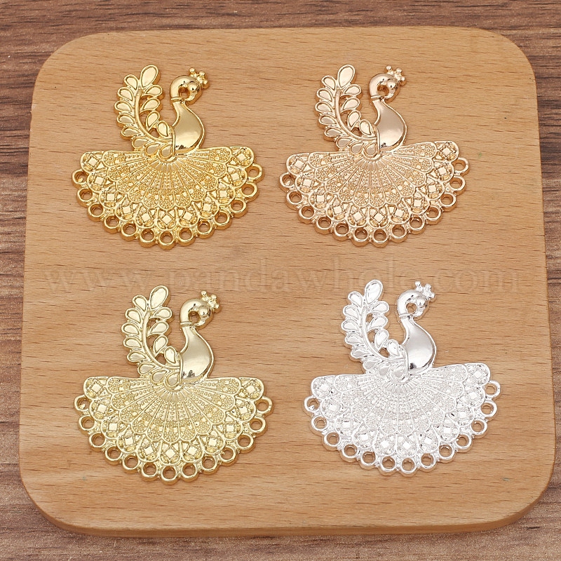 • Серебро Звенья компонентов люстры из сплава павлина, серебряные, 38x37 мм