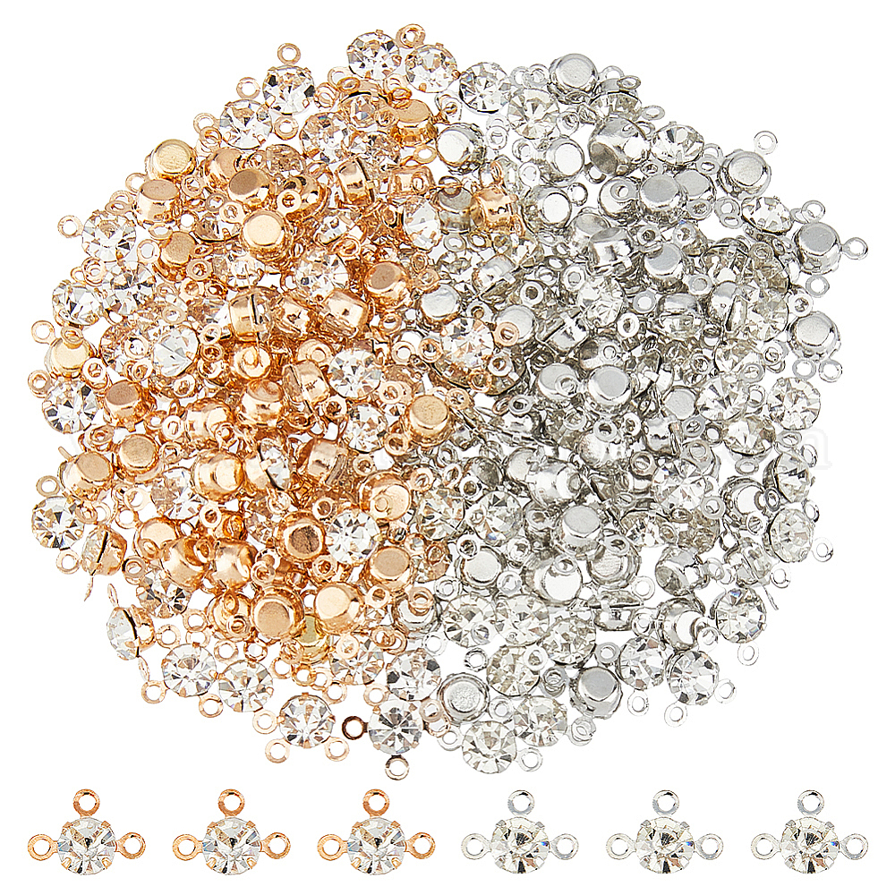 200 шт. 2 цвета латунь паве прозрачное стекло люстра компоненты ссылки, плоско-круглые
