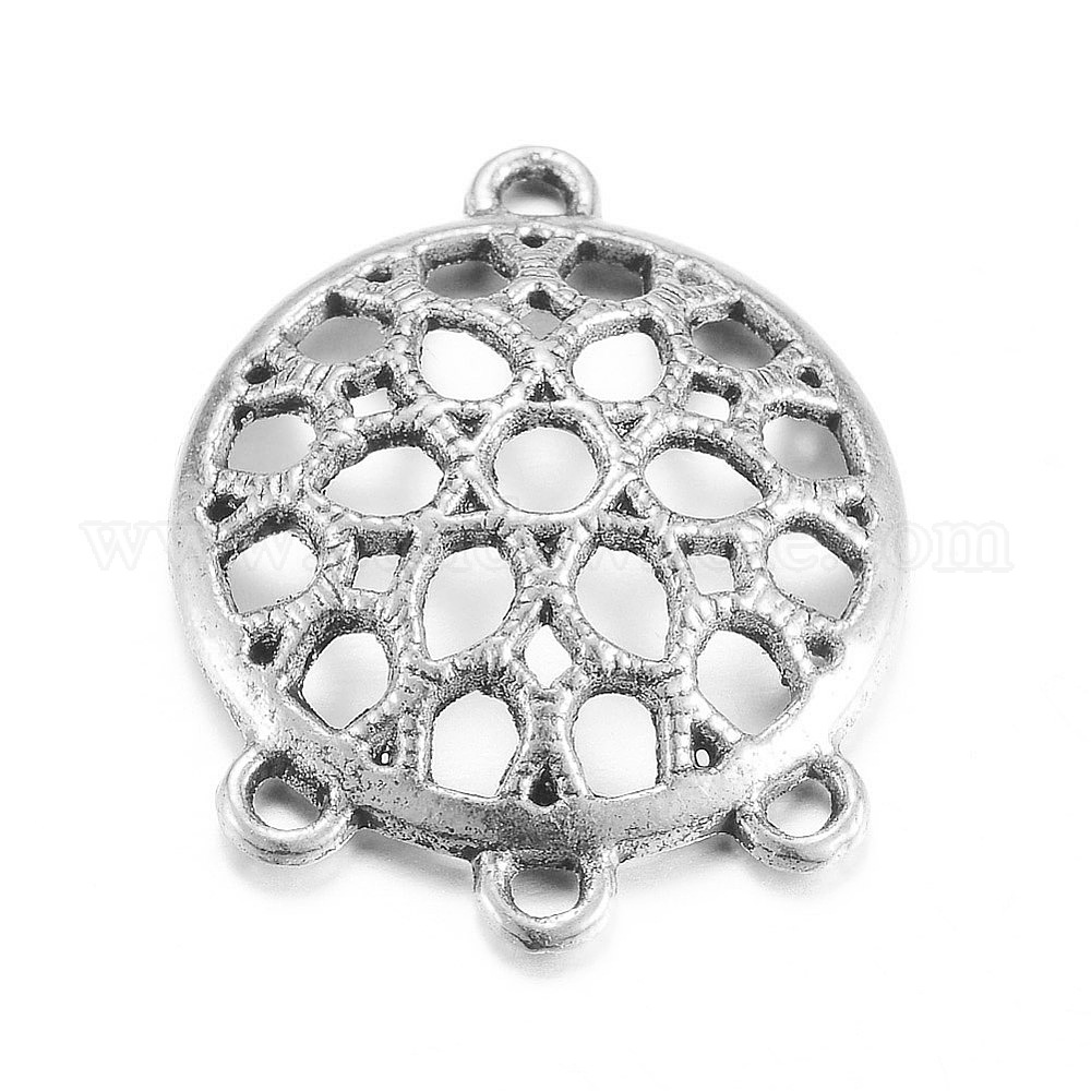 Тибетский стиль компоненты сплава люстра ссылки, плоско-круглые, без кадмия и без свинца