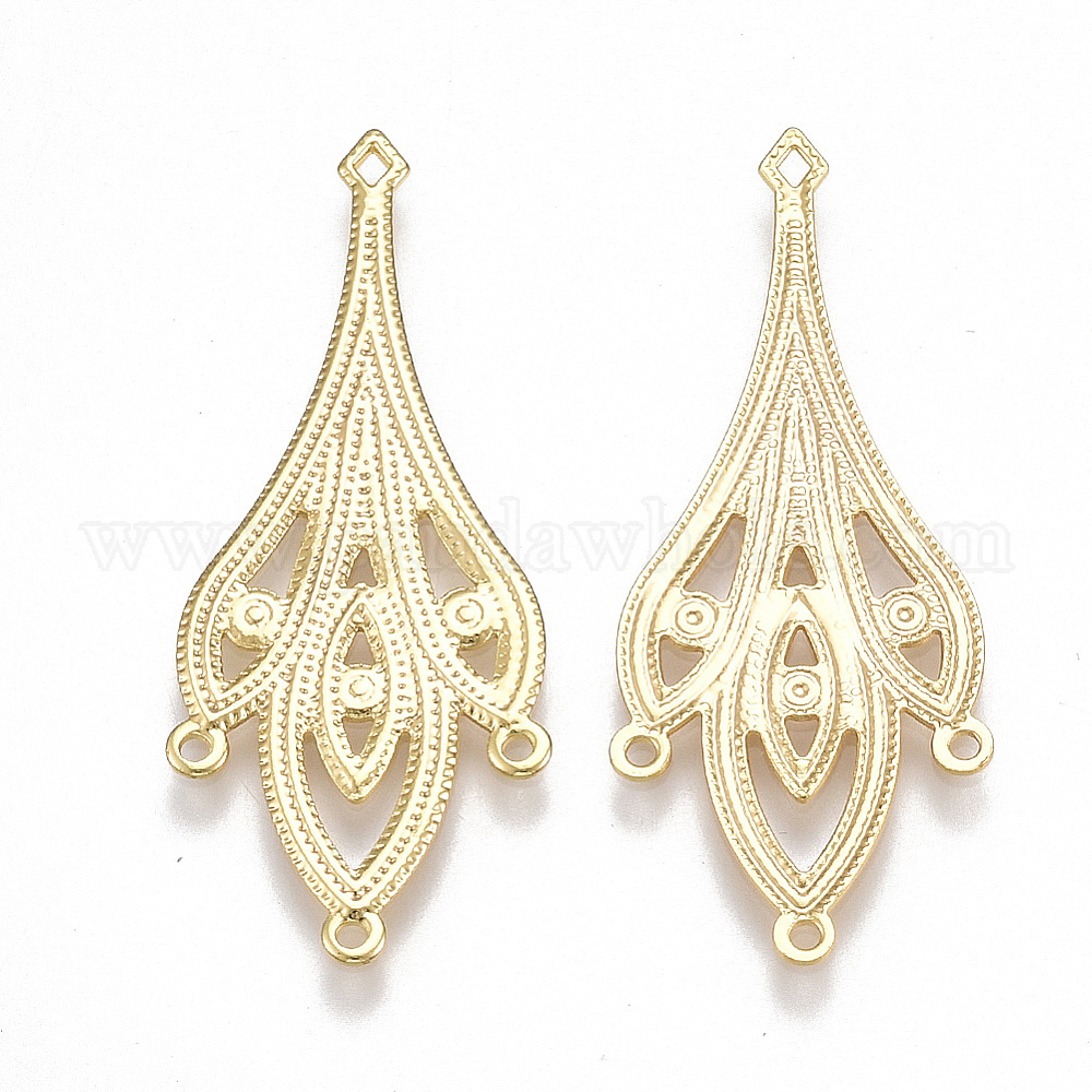 • Настоящее золото 18K Бронзовая люстра компонентов ссылки, цветок, без никеля , реальный 18 k позолоченный, 35.5x14.5x1 мм, отверстие : 1 мм