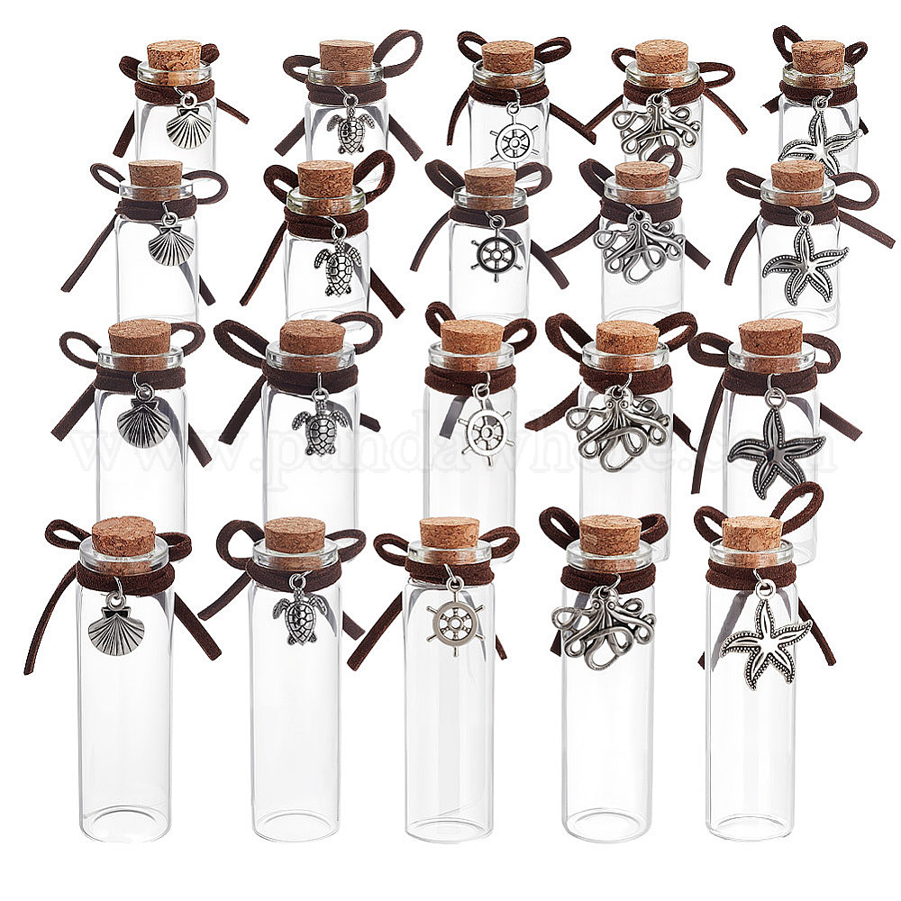 20 шт 20 стили морские животные тема прозрачные стеклянные пустые бутылки с подвесками из сплава, для хранения шерсти домашних животных, разнообразные, платина