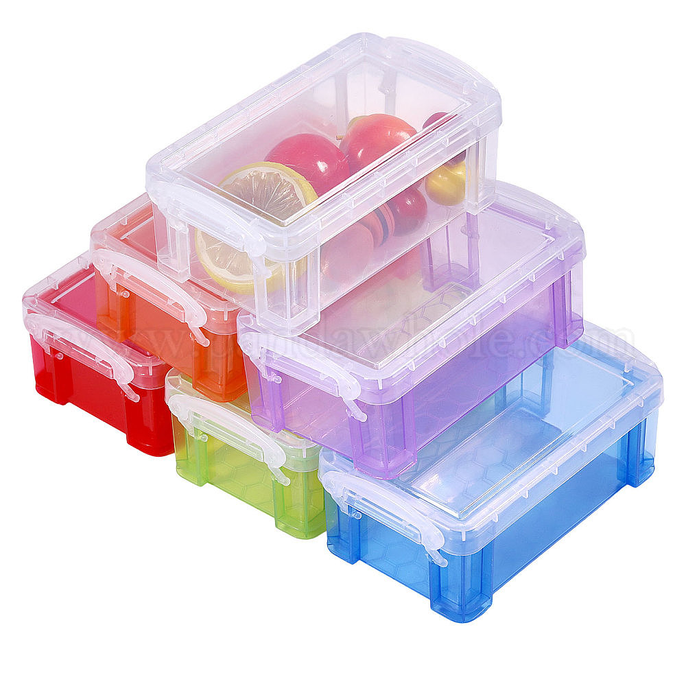6 шт. 6 цвета прозрачный пластиковый штабелируемый мини-органайзер для бусин с запирающейся крышкой, для мелких поделок, прямоугольные