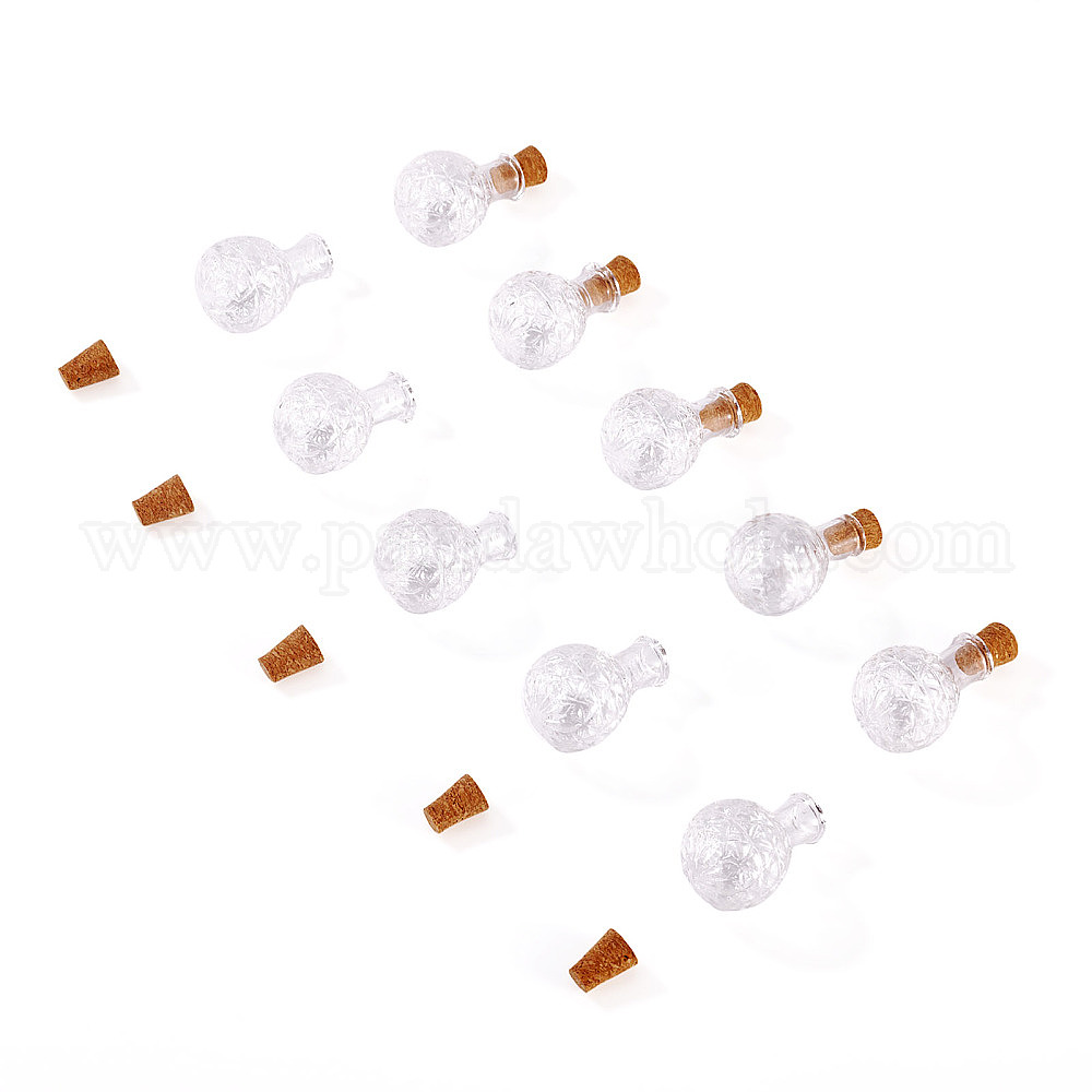 • Прозрачный 10 стеклянные бутылки шт., шарик контейнеры, ананас, с 10шт. деревянных пробок, прозрачные, 2.85~2.9x1.95~2 см, отверстие : 5.5 мм