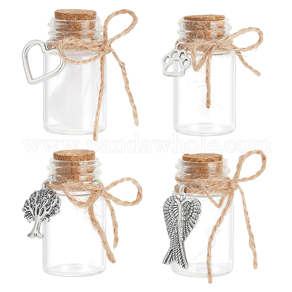 4шт 4 стили прозрачные стеклянные трубки бутылки желаний, с подвесками в виде крыльев в виде сердца, собачьей лапки и пробковой пробкой в тибетском стиле, для золы из костей домашних животных (035N3C)