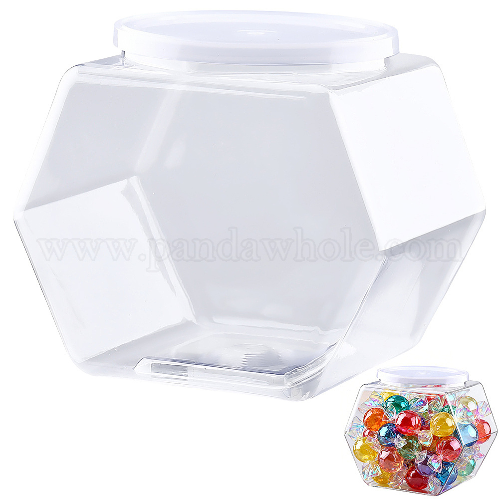 • Прозрачный Шестиугольные пластиковые баночки для бусин с завинчивающейся крышкой и белой крышкой, прозрачные, 13x7.8x12 см, Внутренний диаметр: 7.3 cm, емкость: 850 мл (28.75 жидких унций)